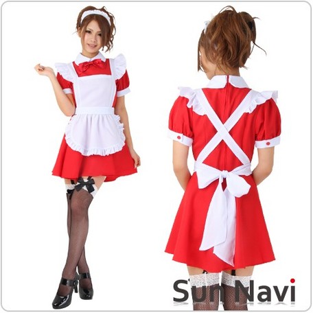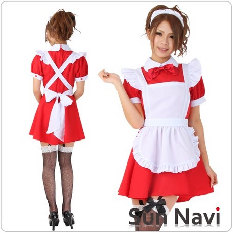【コスチューム】カフェメイド 赤【M/Lサイズ】 [SUN196]【送料無料】(ハロウィン、仮装、コスチューム、パーティグッズ、コスプレ衣裳)●